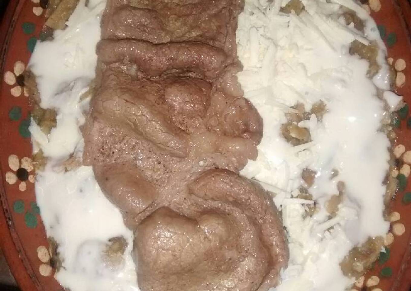 - Acompáñalo con queso y crema cebolla en julianas y ponle encima el bistec comelo con pan telera o bolillo