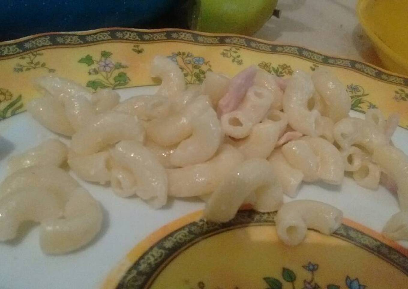 - El jamón simplemente se pica en cuadritos, yo pido las rebanadas gruesas. Ya que hicimos esto, echamos el jamón en el mismo recipiente del codito y agregamos mayonesa al gusto. Ya depende de ustedes si gustan echarle más sal. Disfruten esta rica sopa fría!