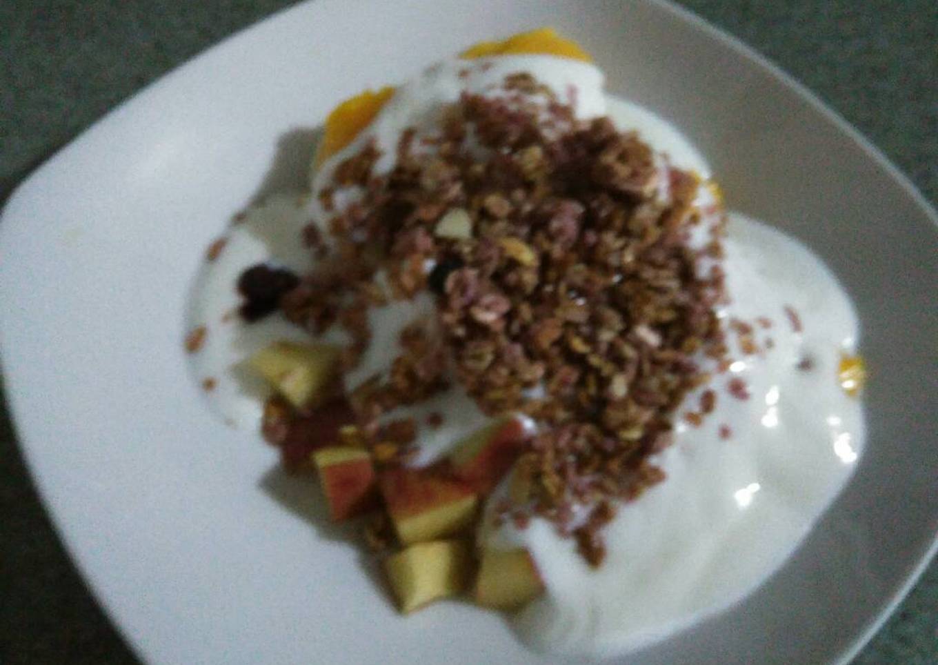 - Lavar y cortar toda la fruta en cuadritos, agregar yogurth, granola y miel.