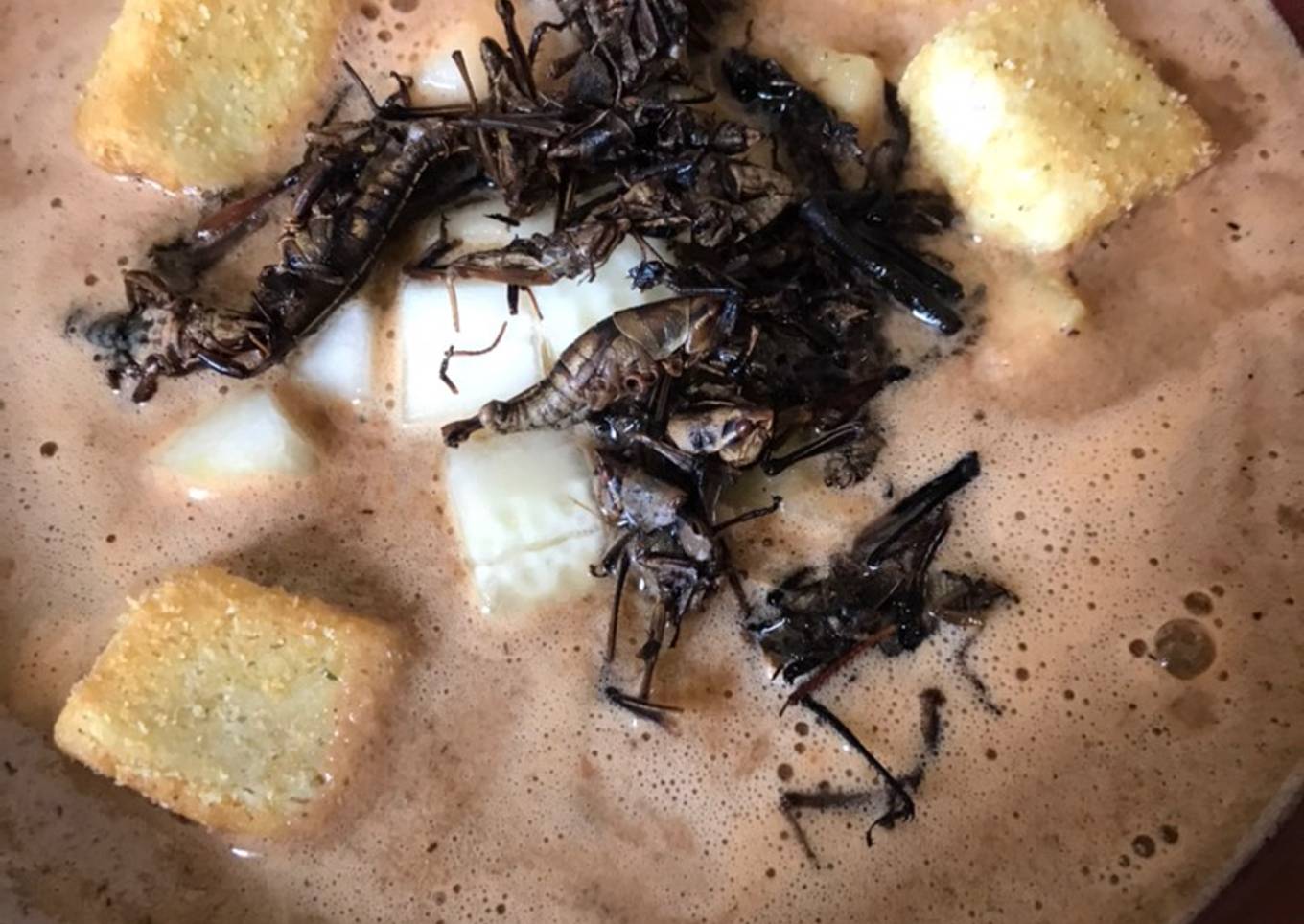 - Sirve acompañado del medio pepino que reservaste, croutones y chapulines. ¡Buen provecho!